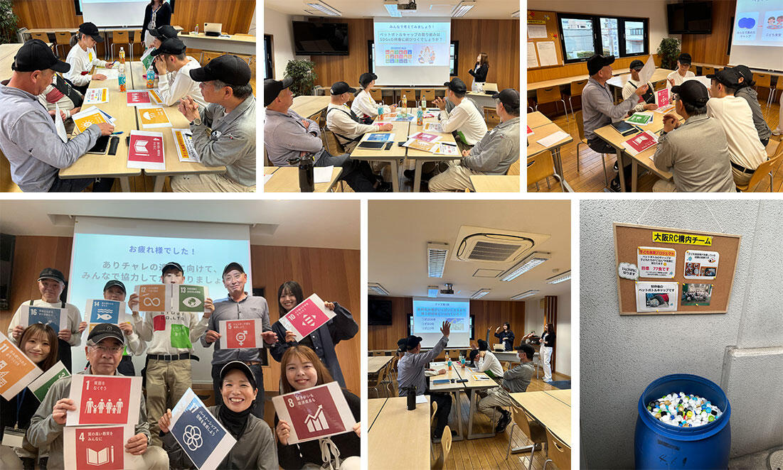 そのあと、大阪 RC の構内メンバーが中心となって進めている「“ペットボトルキャップを拠点内で回収し、子ども食堂へ寄付する活動”は、SDGs の何番の目標に沿った取り組みなのか」について、ワークを通して理解を深めました。