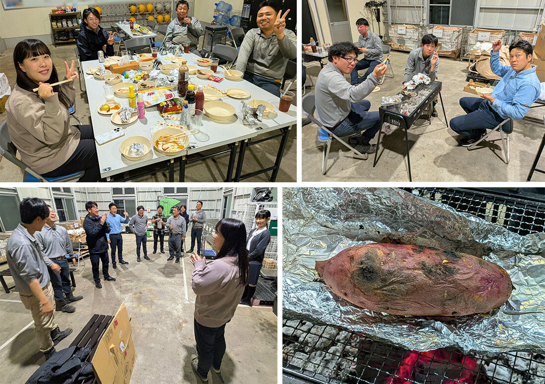 テーブルには沢山のお肉や海鮮類が並び、さらに「仙台支店で育てたさつまいも」も用意しました。